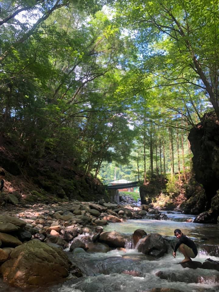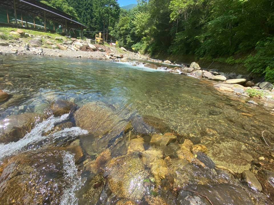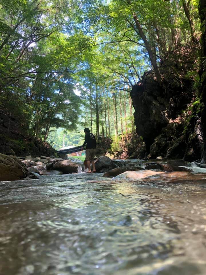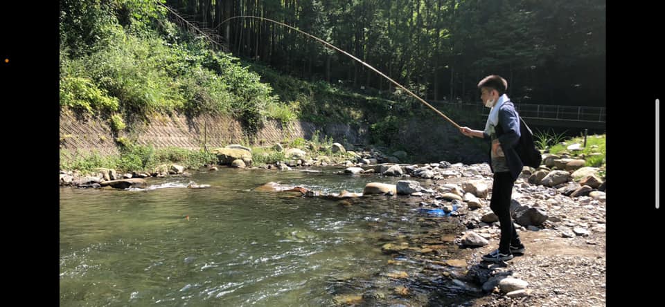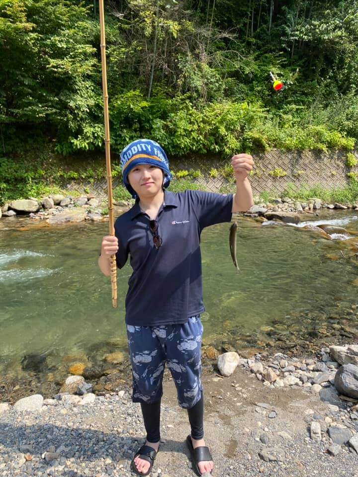 まず初めに奈良子釣りセンターの自然を楽しみました。決められた区間は川に足をつけたりすることもでき、冷たい水に触れ涼むこともできます。とっても水がきれいで驚きました!