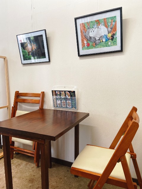 店内に入ると、暖かい雰囲気の内装で、かわいらしいジブリの絵が沢山飾ってありました。