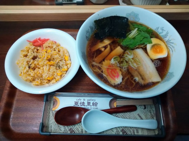 大月駅から徒歩3分の所にあるカフェ&ギャラリー亜徒里絵へやってきました。お店です。お店の入口には、沢山の料理の写真がはってあり、入店前からワクワクがとまりませんでした!!