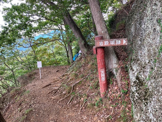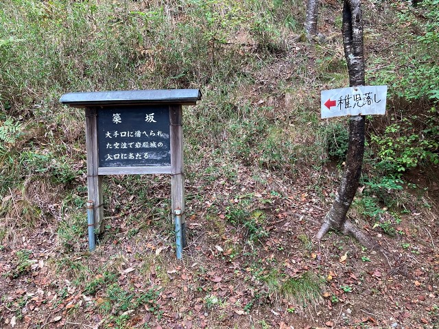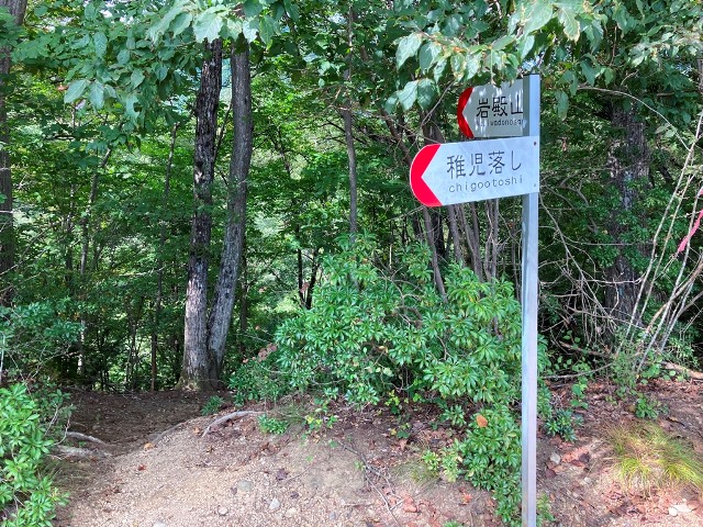稚児落とし目前地点、岩沿いと林間道に小分岐