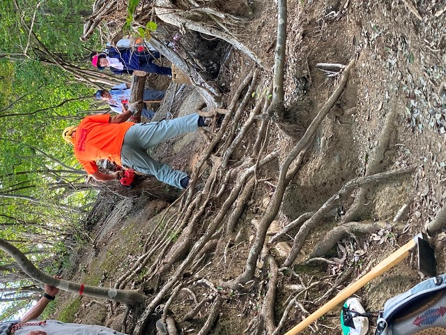 大月駅からアクセスのいいことで知られ季節を問わず人気の「岩殿山~稚児落としのコース」は、登山道ザレ場が多く難易度の高い箇所や足場の悪い危険個所も多くあること(中級者向け)を改めて体感しました。登山に訪れた方が安全に登山が出来るようにと、山の整備活動は定期的に行われています。山に登って見える素晴らしい景色の先には、そうした人たちの活動があることを実感し改めて感謝する思いでした。
