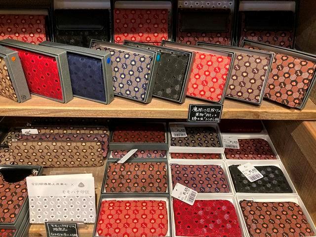 観光協会からは、電子感謝券のほかに上原勇七とモモハナのコラボレーションで生まれた印伝の商品の数々や、