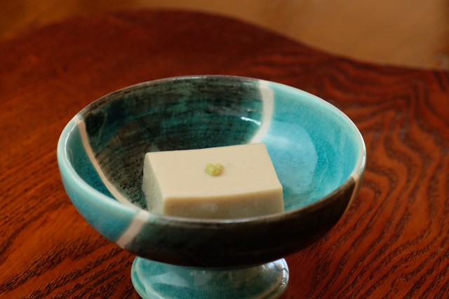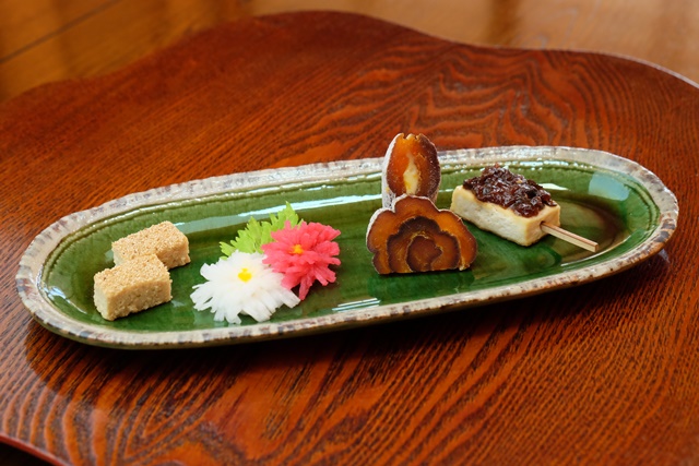 自家製の豆腐と干し柿や季節のものを白あえに。