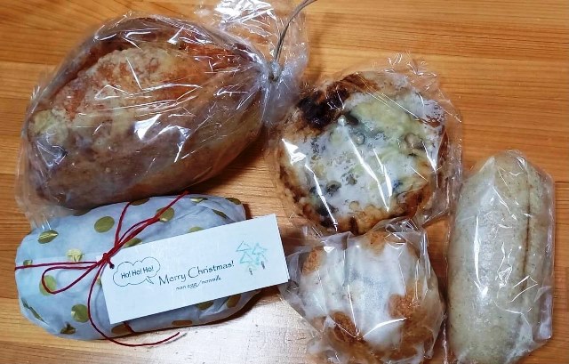 ・使用している材料は、北海道産小麦粉、オーガニック砂糖、オーガニックドライフルーツ、オーガニックナッツ、オーガニックチョコレートなど。一部のパンに、醗酵バター、無添加チーズ、国産無調整豆乳を使用。