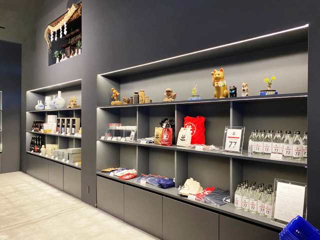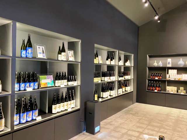 カフェの隣には、お酒を販売するスペースもあり、たくさんの種類のお酒が並んでいます(写真9)。試飲もあるそうです。また、試飲スペースの隣では、甘酒味のソフトクリームも販売されていました。