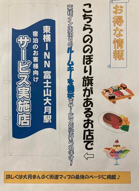 《東横INN宿泊者様必見 》青白ののぼり旗 が目印です。