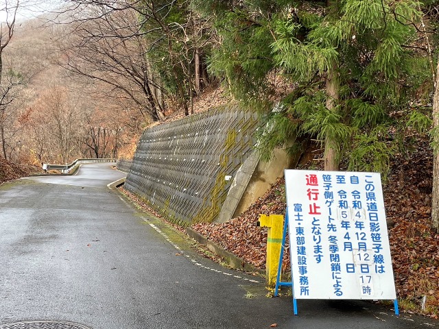令和4年12月12日17時から令和5年4月まで冬季閉鎖のため通行止め