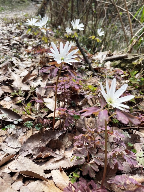 ・猿橋公園の遊歩道のイチゲ 見ごろ