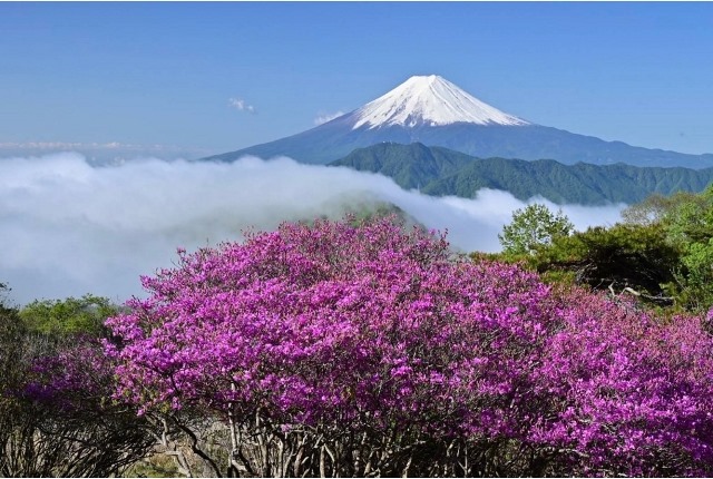 だからこその雲の流れと雲海、そして季節外れの寒気のお陰げで、ツツジがほぼ満開の時に真っ白く化粧をした富士山を撮影することが出来ました。