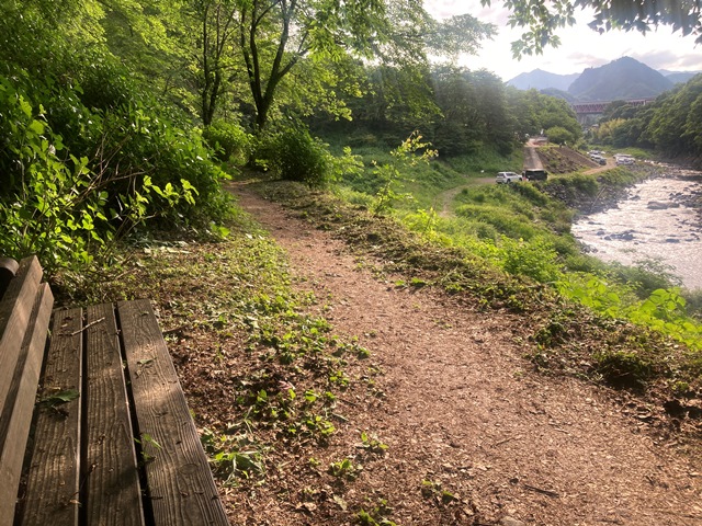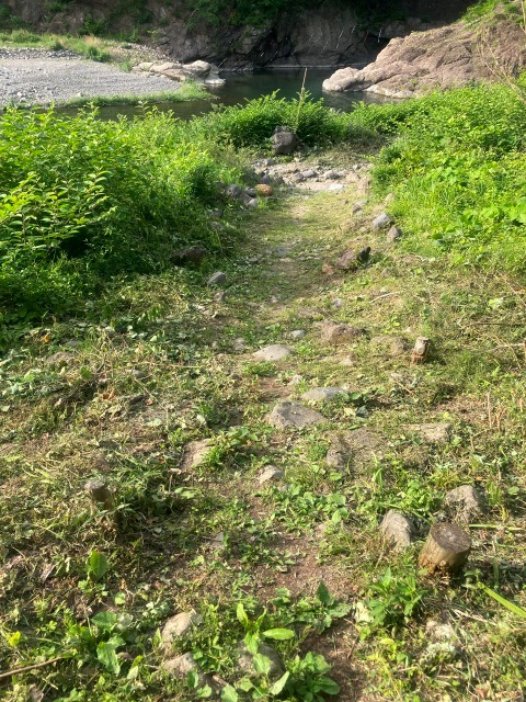 桂川に下る道もきれいに刈られていました。これで猿橋の下のボート下り