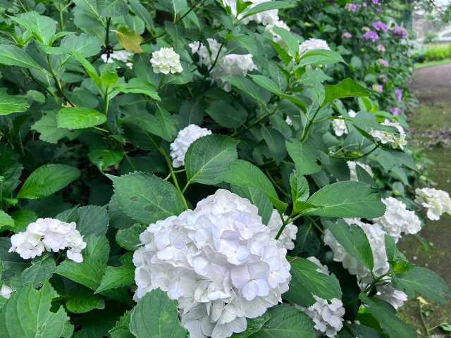 公園の周りにもたくさんアジサイが咲きますので、公園でゆっくりするのもおすすめです。お弁当を 広げるのもいいですよ