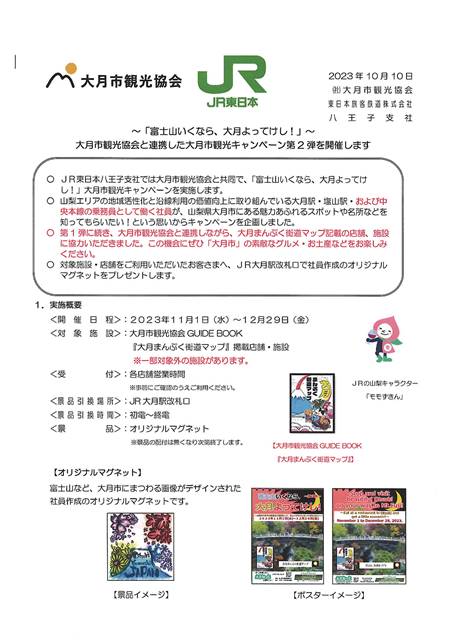 JR東日本八王子支社と大月市観光協会と共同で「富士山いくなら、大月よってけし」大月観光キャンペーンを