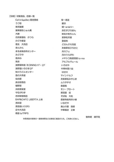 第1弾に続き「大月まんぷく街道マップ」記載の店舗、施設でお食事やお買い物、体験された際のレシートか