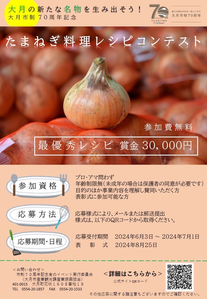 大月の名物となるレシピやメニューを生み出すレシピコンテストを開催します!