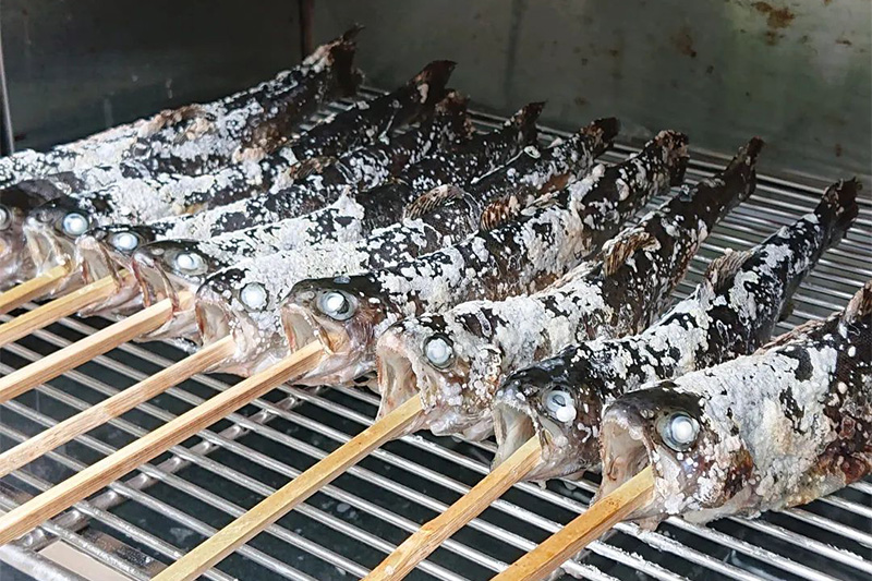 釣った魚はその場で塩焼きにして食べられます!
