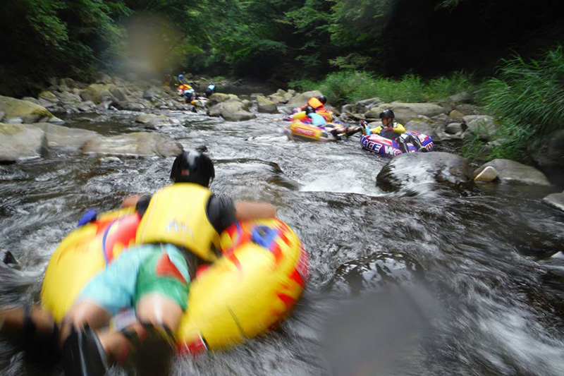 大型の浮き輪に乗って川を下るアクティビティを運営しています。