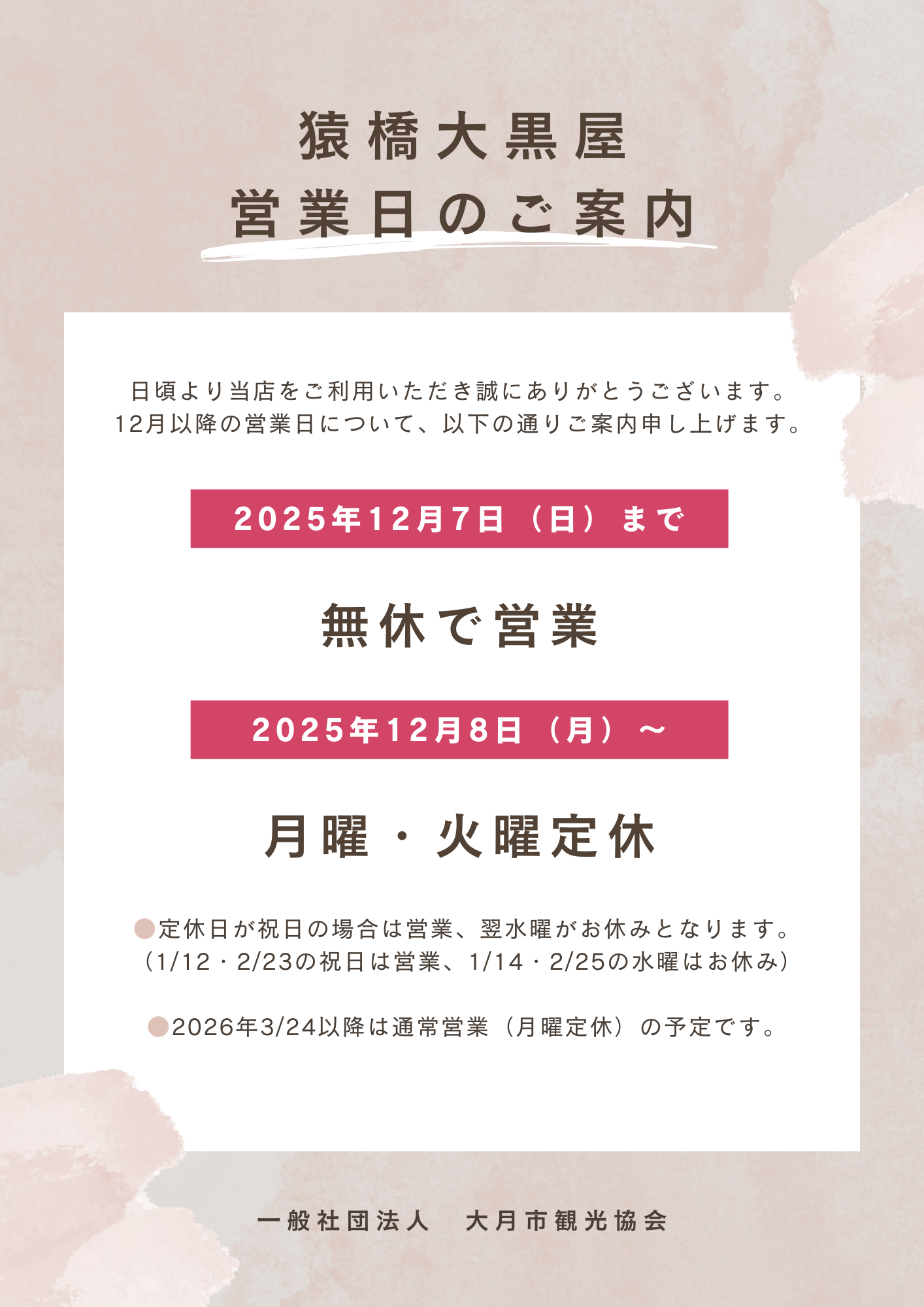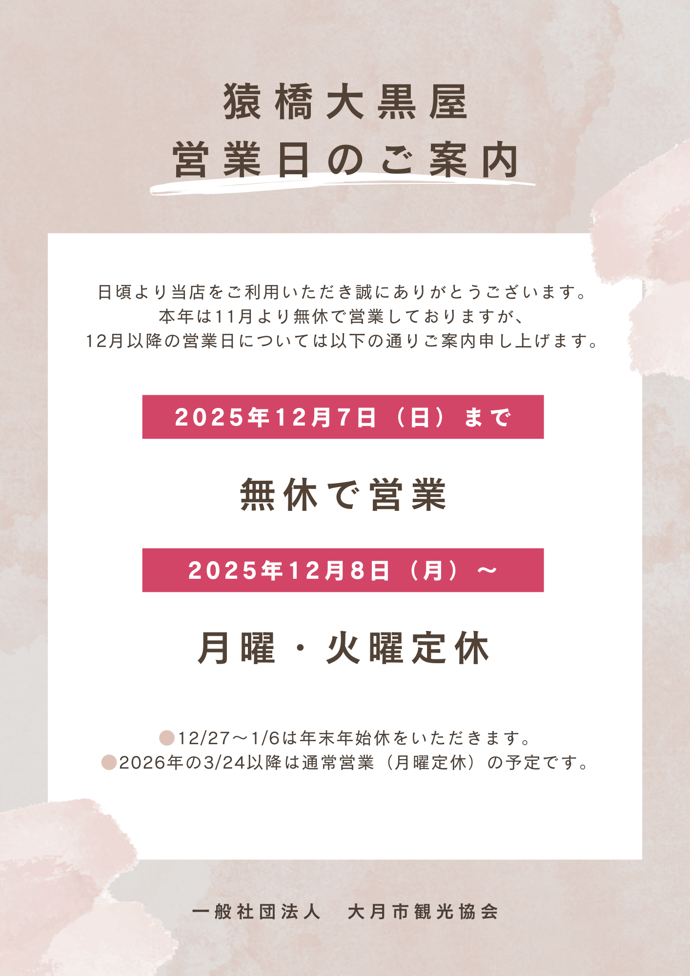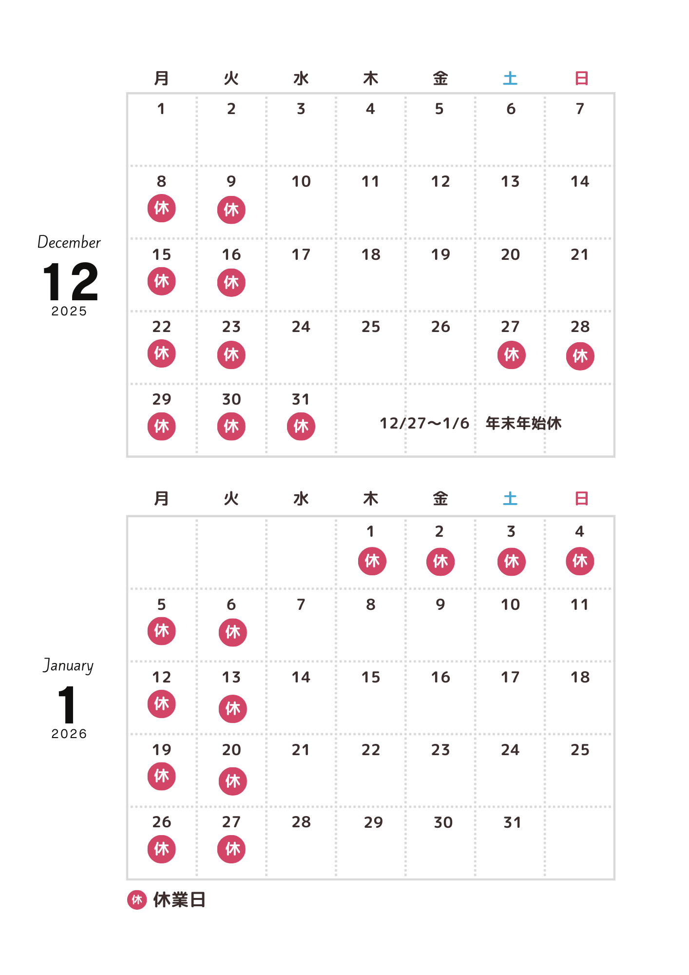令和7年年末および令和8年年始の営業について(お知らせ)
