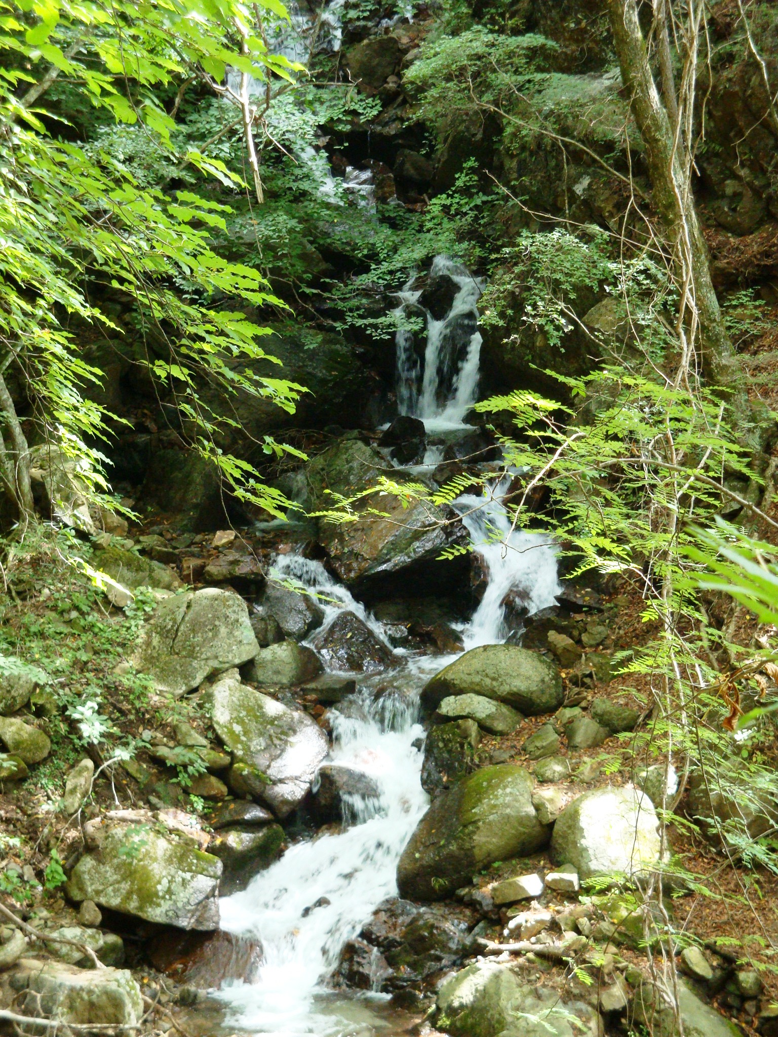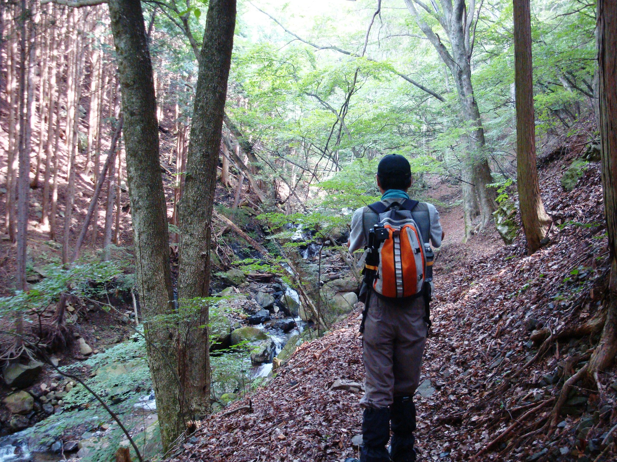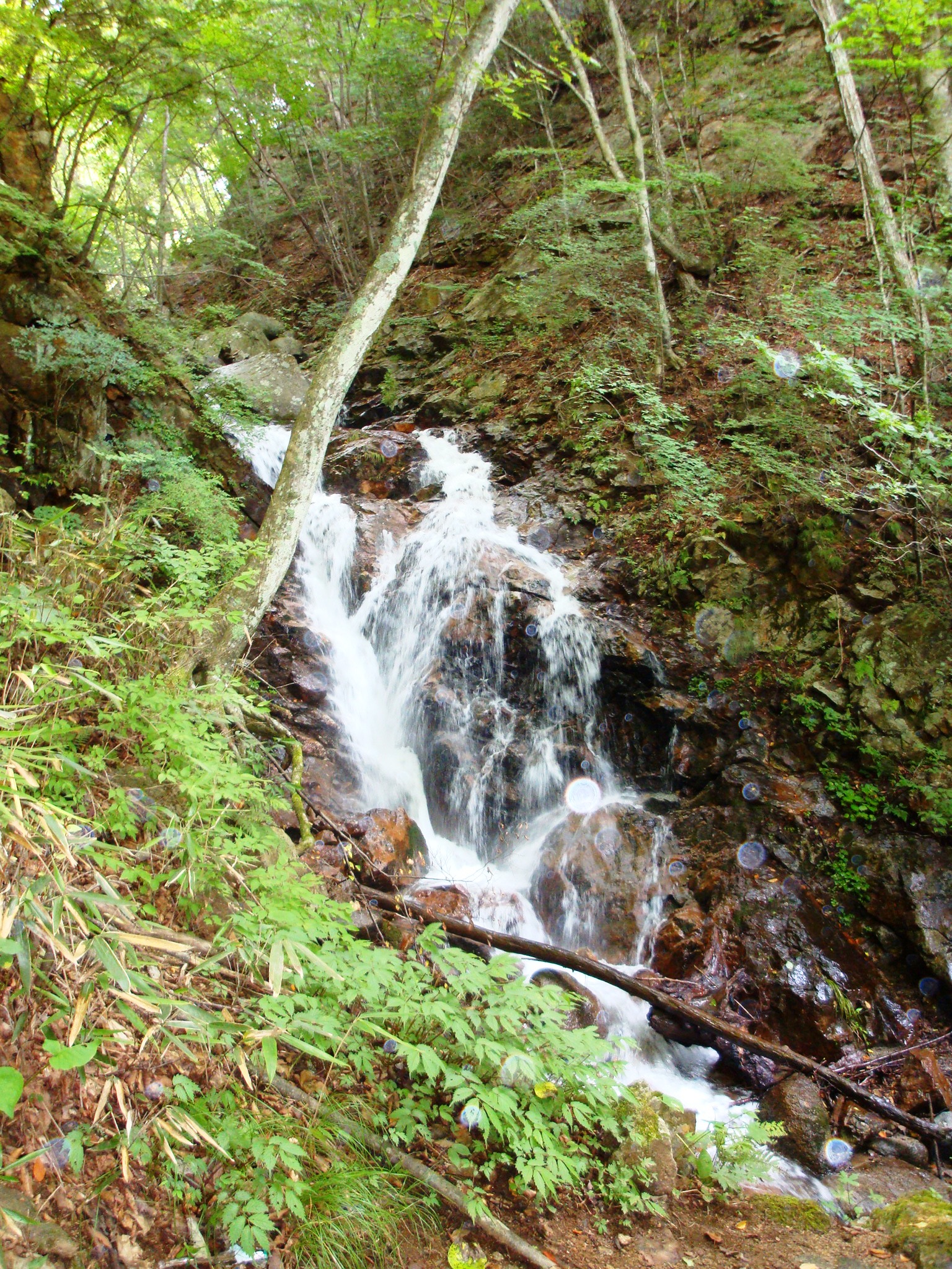 入ってすぐから、水の音が気持ちいい滝に沿って歩きます。