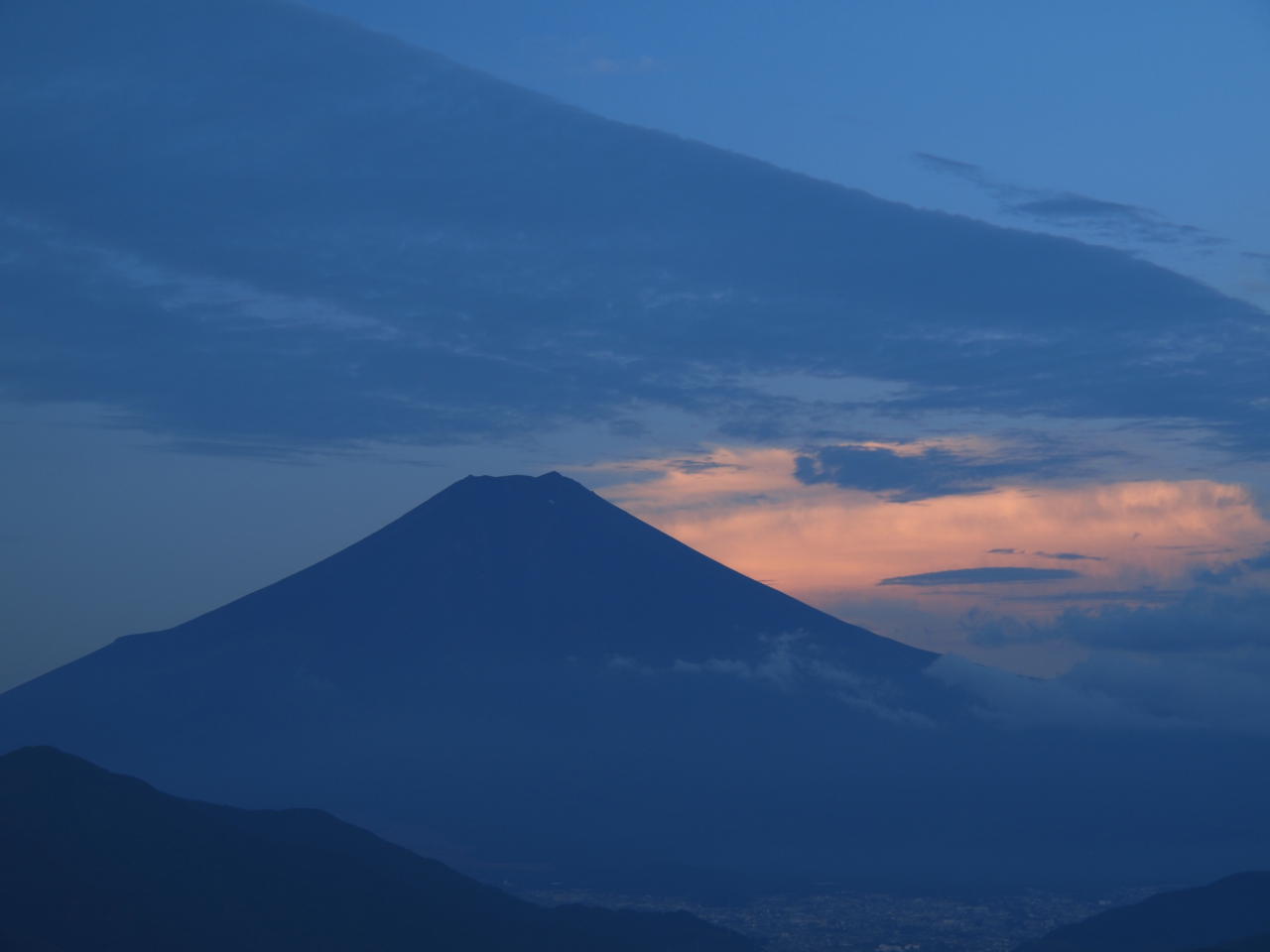 夜明け前の山頂からの富士山です。