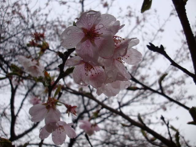 雨に濡れていると、桜もしっとり色濃く見えました。