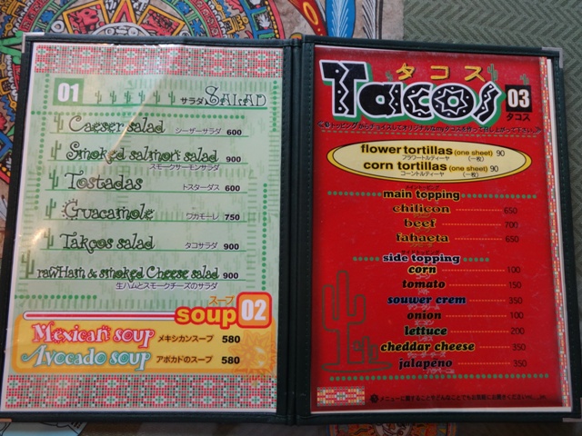 メニューはご自慢のタコスから