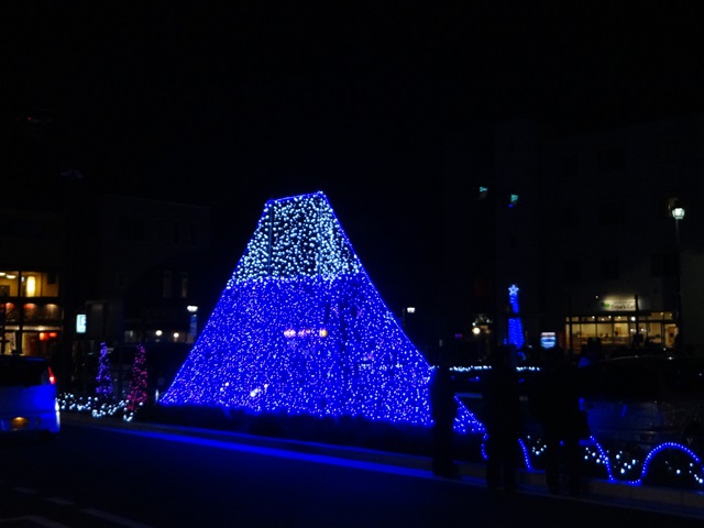 駅を出ると出迎えてくれるのがどど~~~んと大きい輝く富士山のイルミネーション