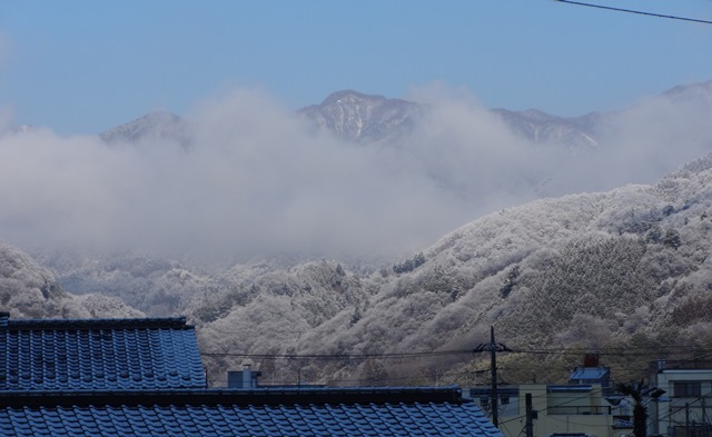 さて、粉砂糖をかけたような今朝の美しい山々です。
