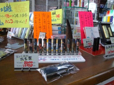 印鑑は既製品6000本を在庫として持ち、もしない場合は60分で彫ってもらえるというとても助かるサービスもやっています。