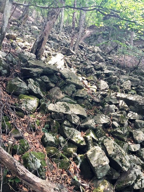山の上から砕かれた岩が川の様に帯になっていた箇所。 何億年も前は海の底であったという地球の歴史を物語っている場所・・。