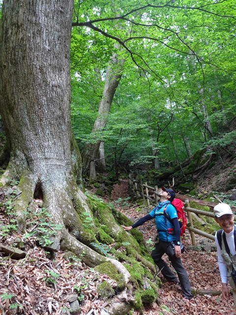 おそらく日本で一番大きいとされるシオジの木 木周りは大人3人でやっとこ・・樹齢二百数十年?