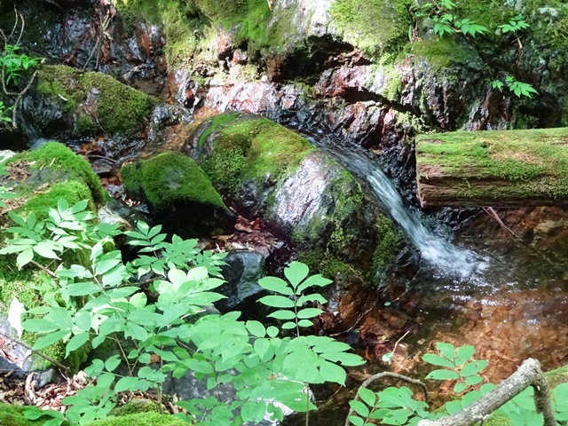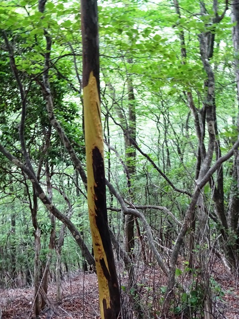 沢沿いに生育するシオジの幹は、柔らかい感じがしました。