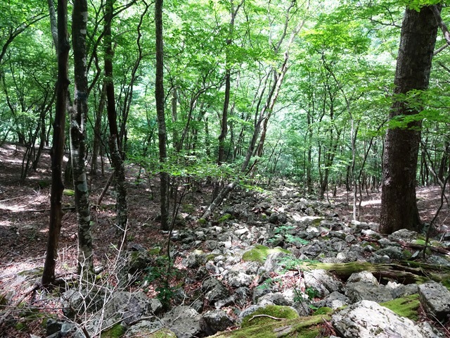登山道は木の階段で整備されすぐ脇は動物たちのけもの道がいっぱい。