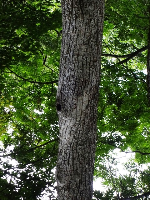 高くそびえる木の左中央の穴はムササビの巣だそうです。 絶えず鳥たちの囀りが聞え・・どっぷり自然の中にいる事を実感しました。