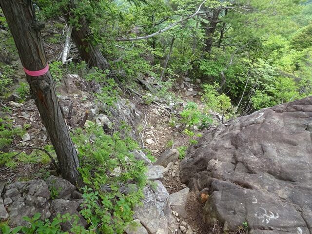 - 登山道は全体的にわかりやすいですが、土や木の根や岩の露出した場所が多く、雨が降った後など滑りやすいのでしっかりした装備が必要。