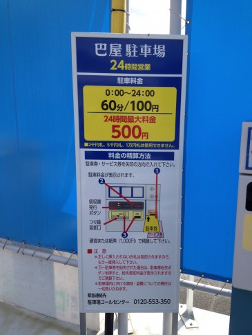 1時間¥100で、最大24時間¥500 なので安心して駐車できる。