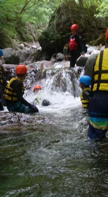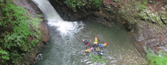 真木川上流の自然豊かな沢を現役猟師と一緒に行くシャワークライミング