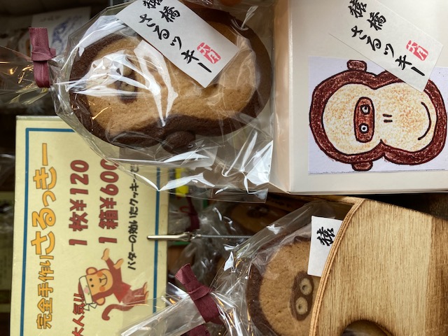 不動の人気商品でもある「さるっきー」個包装のバラタイプ120円と、一箱5枚入りの箱タイプ600円