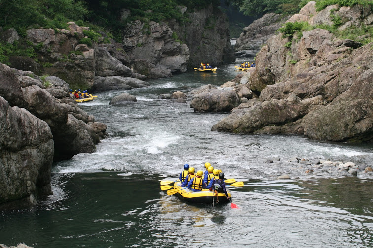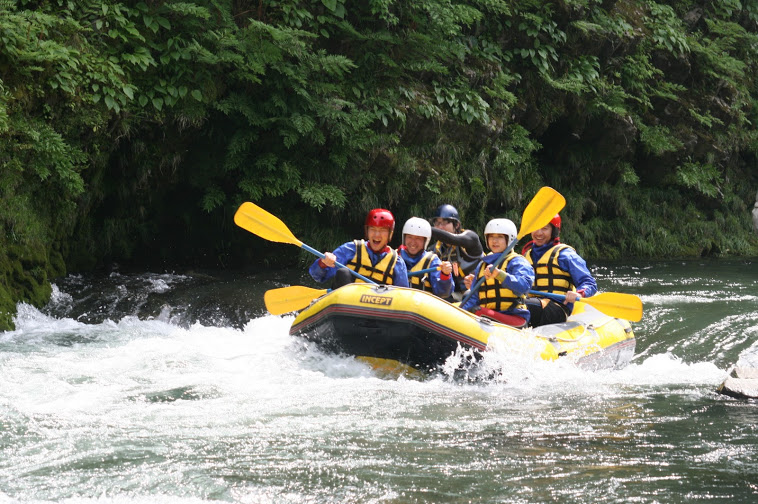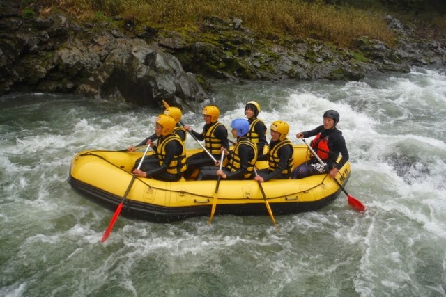 力を合わせて急流を乗り越えていくことで、チームワークの大切さや喜び、仲間との絆を深めることができるので野外体験学習、修学旅行の教育プログラム、会社の研修旅行として取り入れられる団体様も多くいらっしゃるそうです。