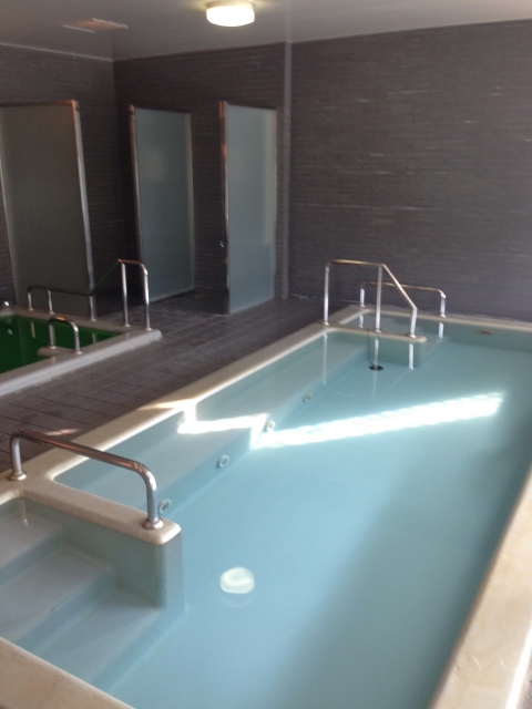 大月駅から国道20号を下りに徒歩15分、大月インター近くの総合福祉センターは広い浴槽と休憩室が完備されています。
