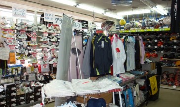 イオン前のスポーツ店。アフターメンテナンスもバッチリです。各種スポーツ用品を取りそろえています。