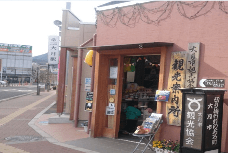 大月駅を出てすぐに位置する観光案内所では、 交通情報や観光情報のご案内、パンフレットのご提供をして おります。 また、大月ならではの工芸品や富士山グッズなどのお土産品 もたくさん取り揃えておりますので、どうぞお気軽にお立ち 寄りください。